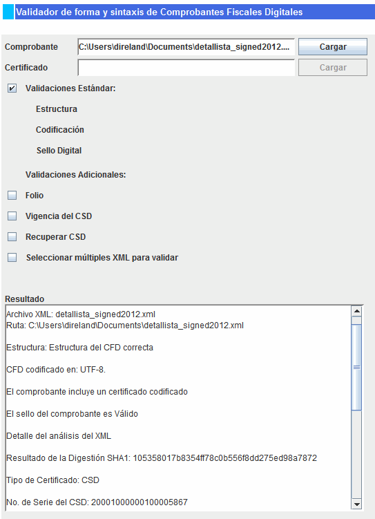 a signed version 2.2 CFD XML document which includes its own X.509 certificate details in a certificado field