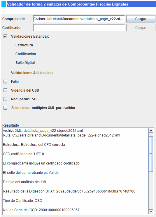 the same but without a certificado field and which needs to be validated with a separate certificate file