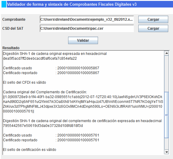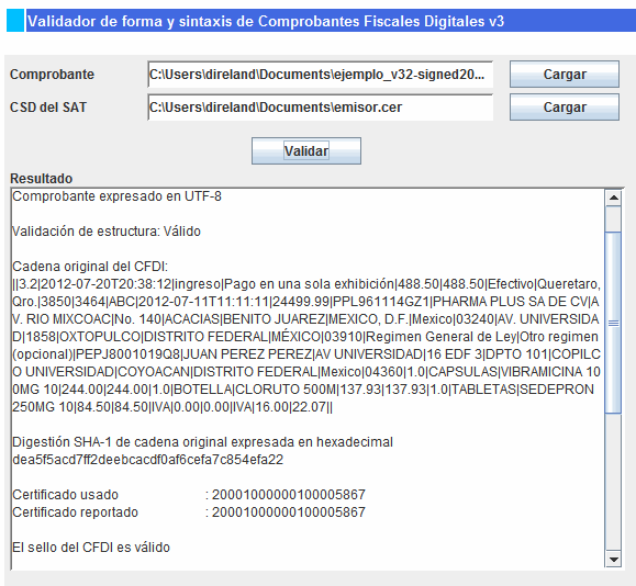 signed using FirmaSAT and validated on the two SAT Validador sites: